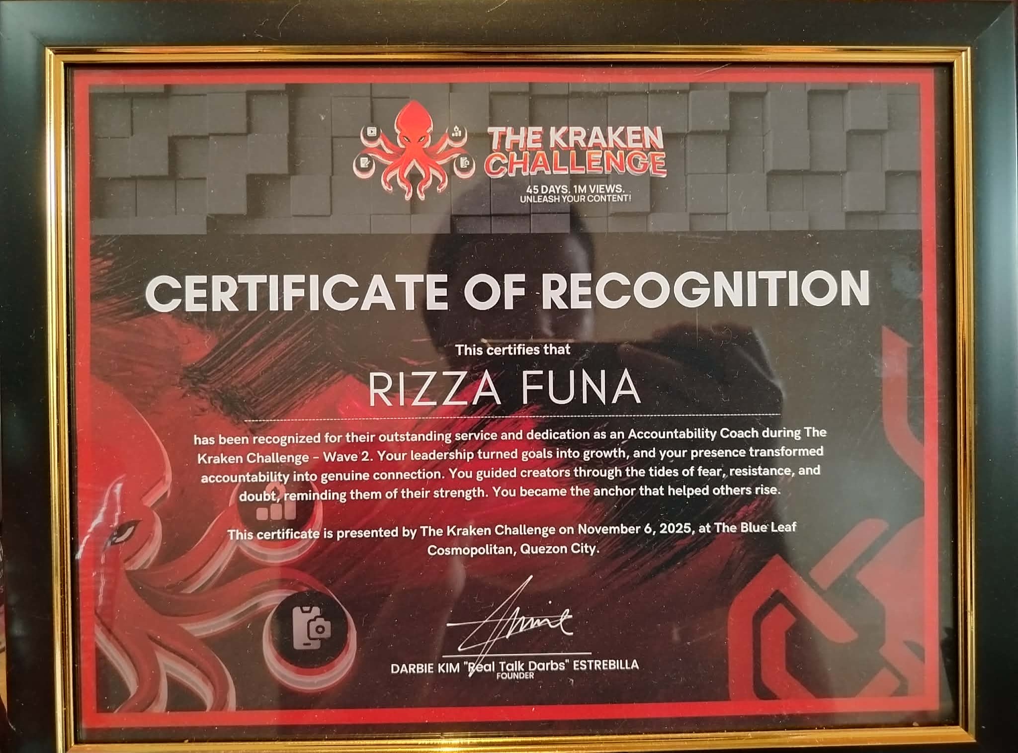 Recognized as an Accountability Coach for guiding creators through uncertainty and self-doubt, helping them turn goals into consistent action and real growth through structure and accountability.